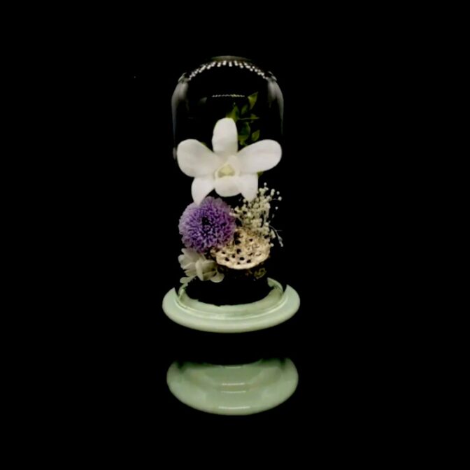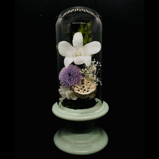 ガラスドームなので、繊細な花びらにつくホコリを気にすることなく、お手入れも簡単です。
