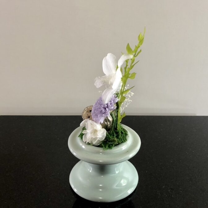 生花を加工したプリザーブドフラワーのアレンジメントです。