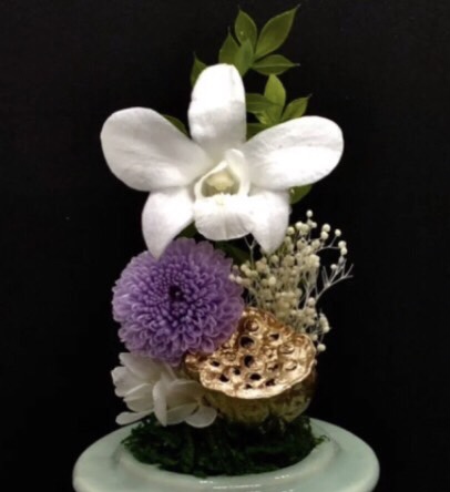 プリザーブドフラワー(洋蘭・小菊・かすみ草、紫陽花・ラスカス)
