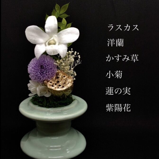 ※トゲのあるお花、蔦のお花は使用していないため、安心してお供えしていただけます。