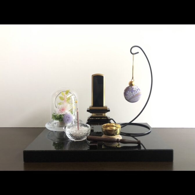 大切な人を想う気持ちを、日常の中で自然に。 「すすむ守り」「お供え花〜奏〜」位牌、香炉、小さなおりんセット、御影石仏壇ステージを組み合わせた祈りのセットは、現代の暮らしに寄り添い、そっと心を支えてくれます。 場所を取らず、いつでも祈りを捧げられる、やさしい供養のかたちです。