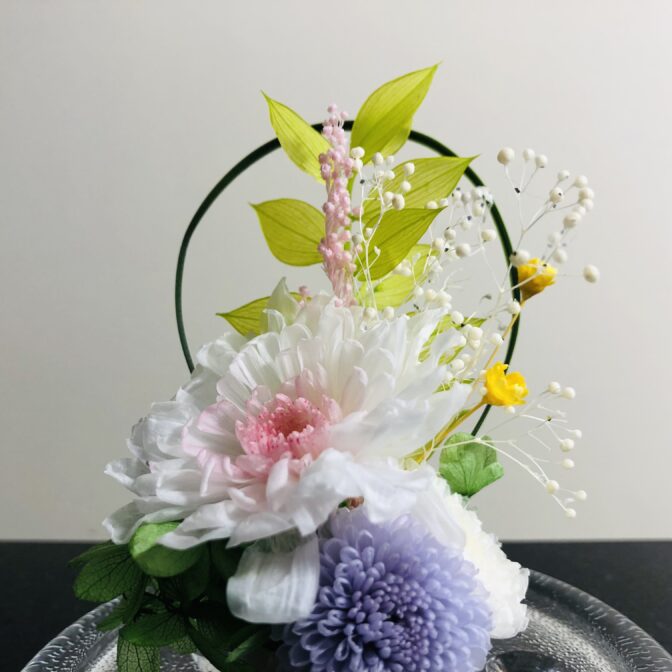 プリザーブドフラワー(琴音菊・小菊・かすみ草、紫陽花)